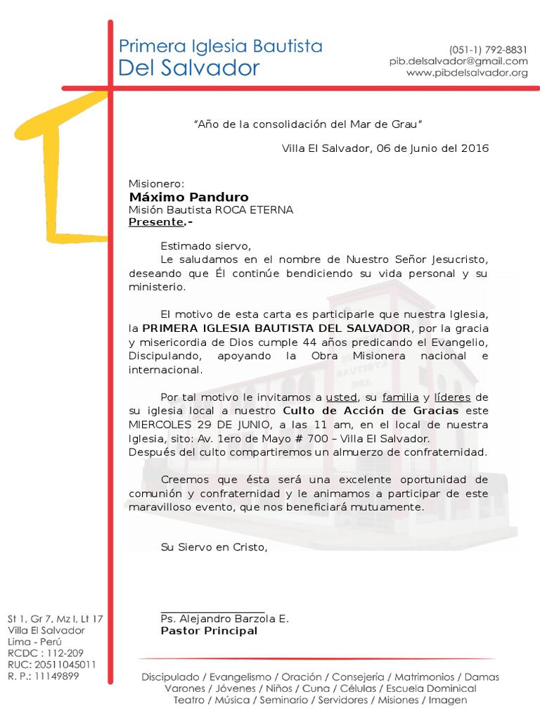 Carta De Invitación Al Culto De Aniversario 2016 via es.scribd.com